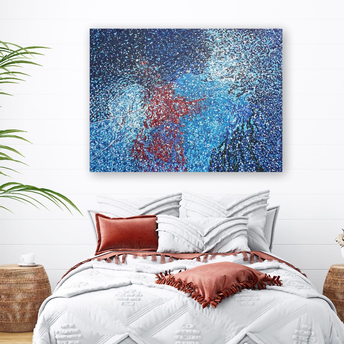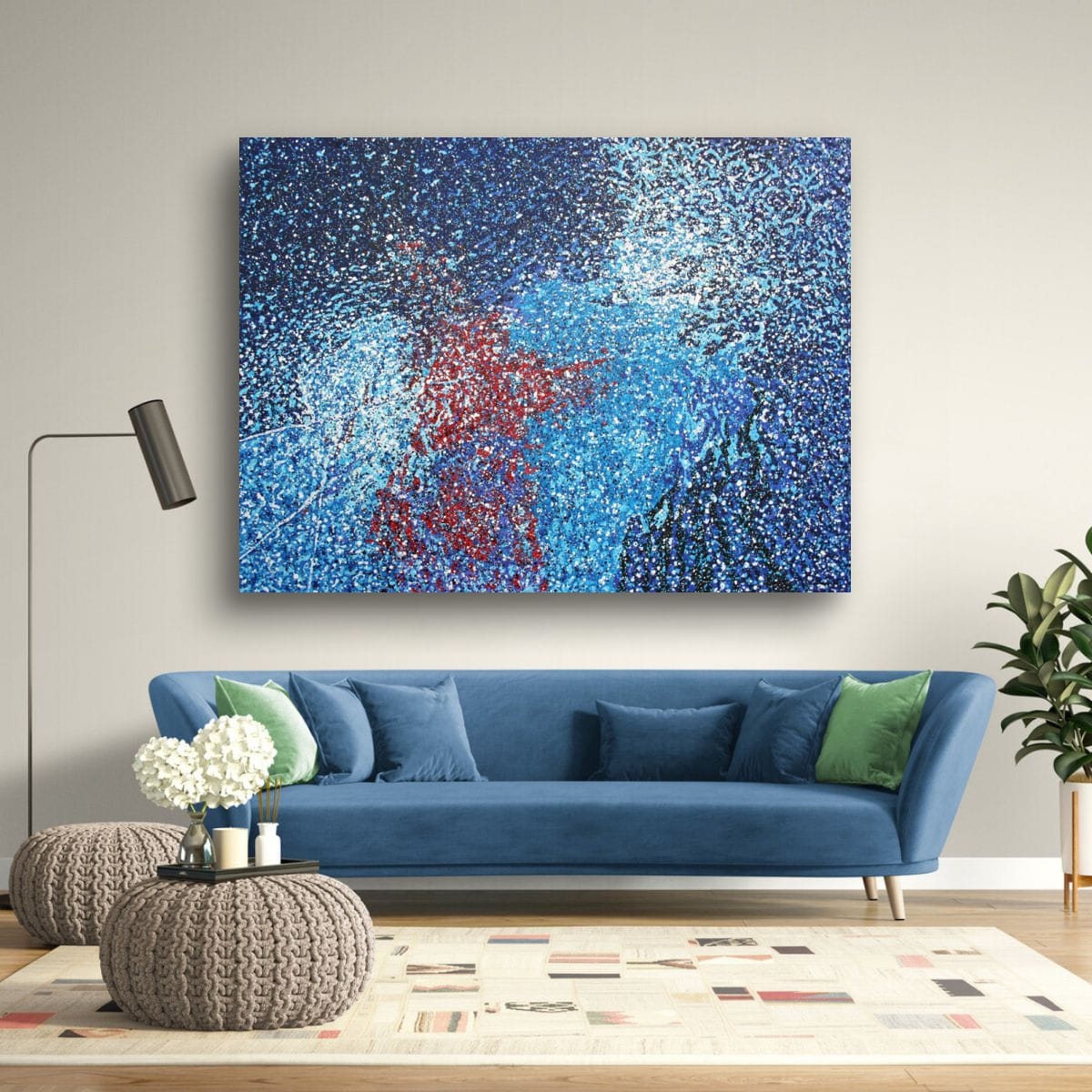 Original painting of a rainy windscreen at a red light in New York. The painting appears abstract until you know what it is. A percentage of the proceeds benefit Ocean Conservancy.